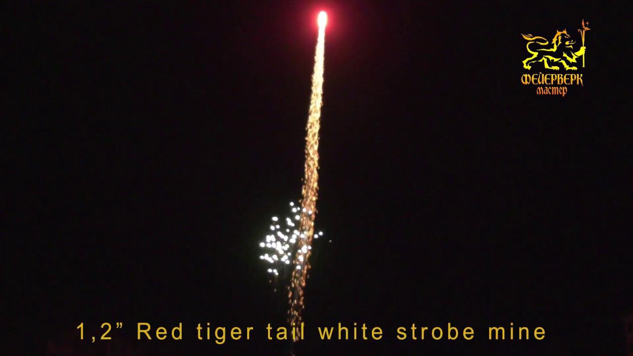 FM501 Одиночный салют 1,2"(Red tiger tail white strobe mine)