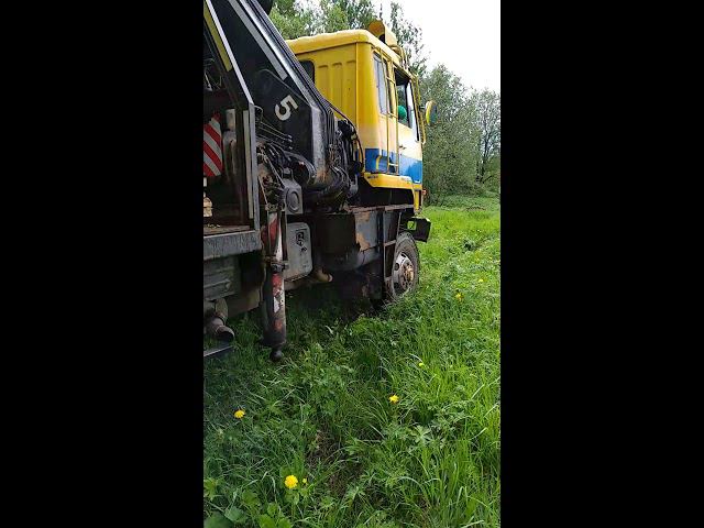 Манипулятор.Боковая разгрузка фуры с брусом