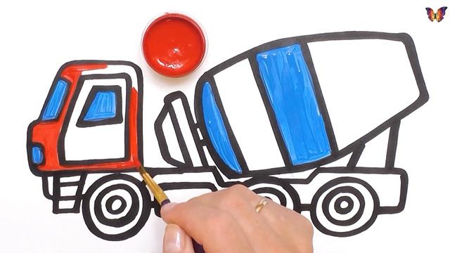Нарисуем строительную технику - бетономешалка, что мешает бетон, для детей
