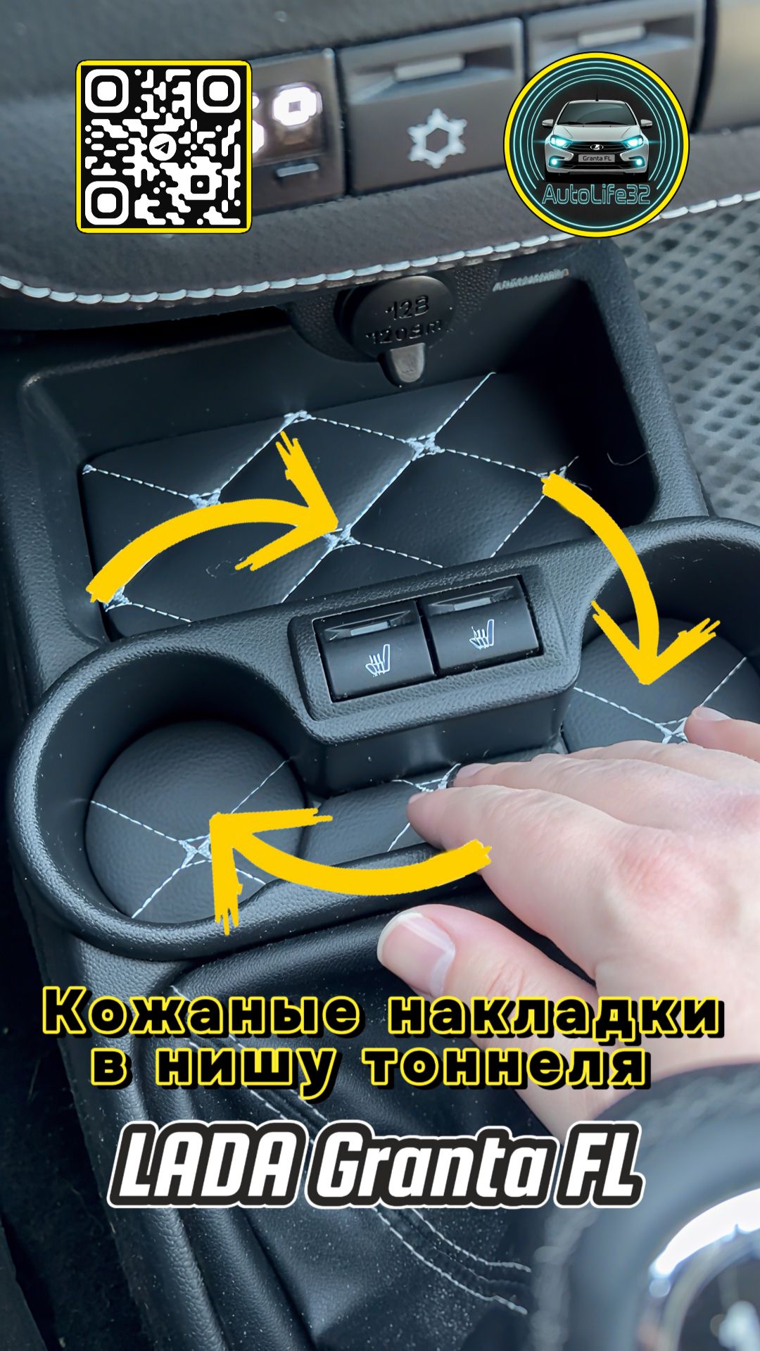 Обзор накладок в нишу тоннеля на LADA Granta FL обшитые кожей (видео от подписчика)