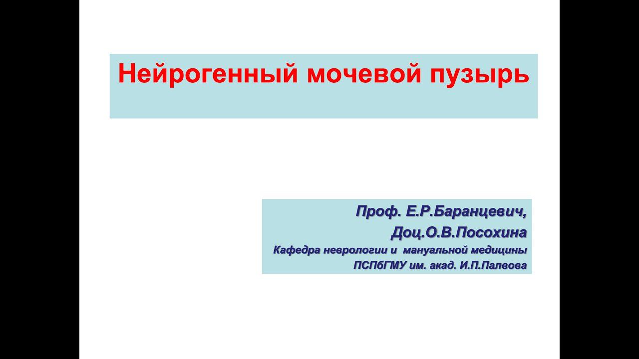 Баранцевич Е.Р., Посохина О.В. Нейрогенный мочевой пузырь.