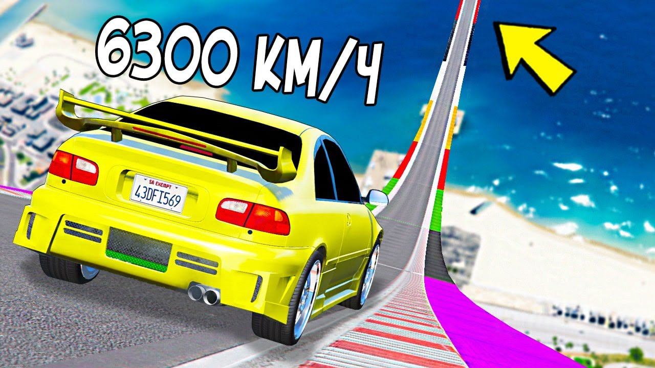 КАК ВЫСОКО В НЕБО УЛЕТИТ ЧИТ ТАЧКА С ОГРОМНОГО ТРАМПЛИНА? ПРЫЖКИ В ВЫСОТУ ГТА 5! #shorts
