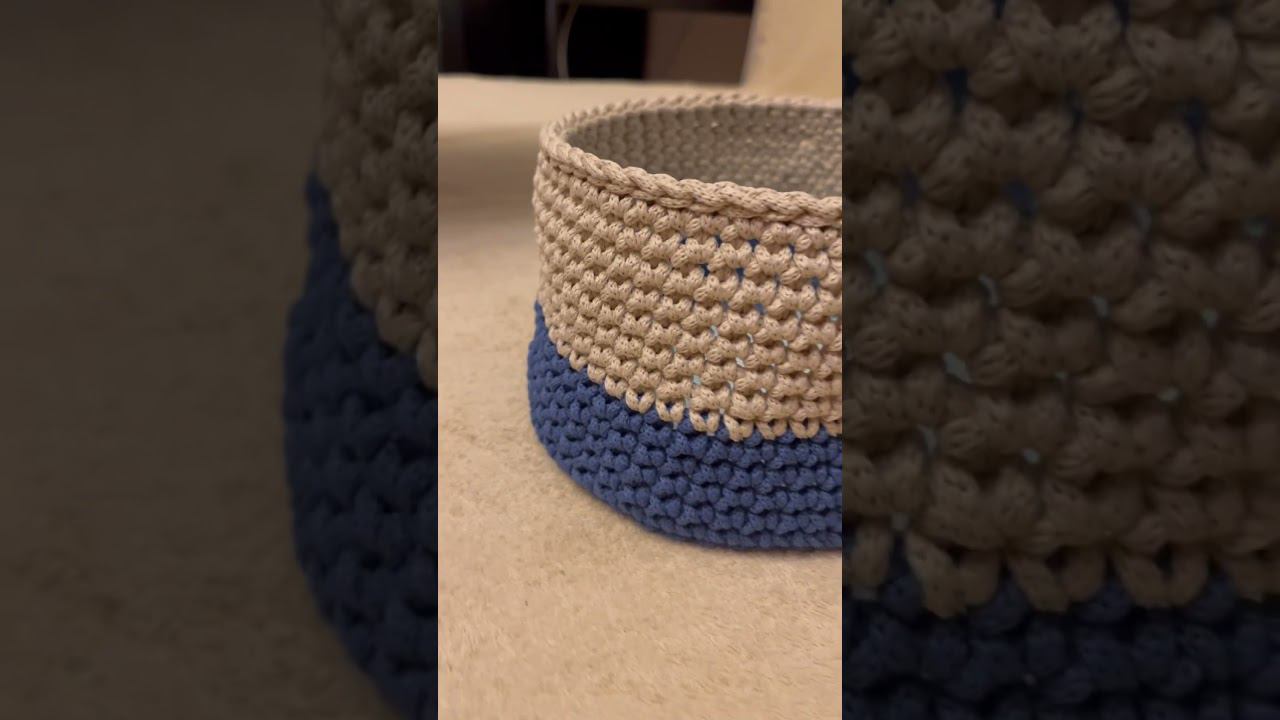 Корзина из шнура крючком / Декупаж / Вязаная корзина