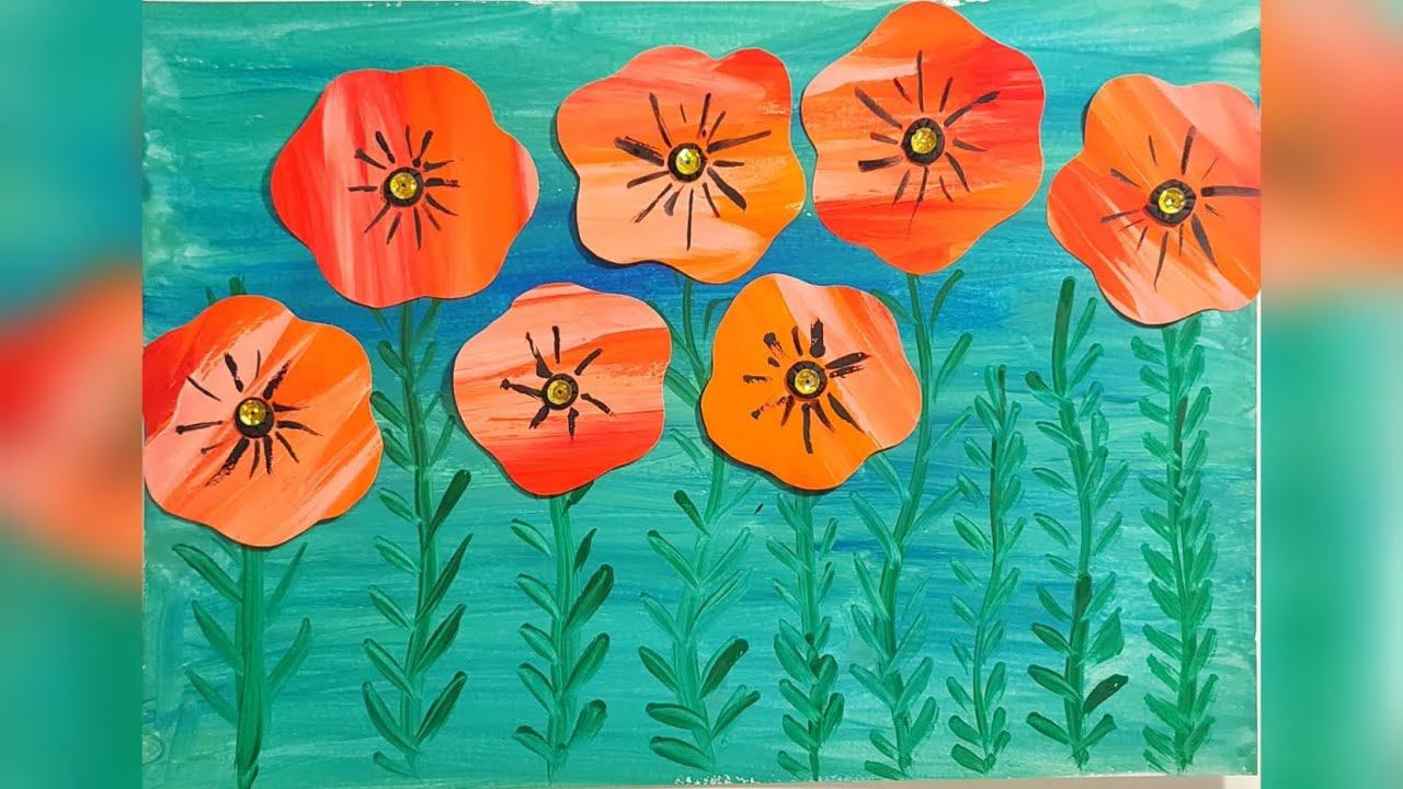 DIY. Paper poppy.Application, children's craft.