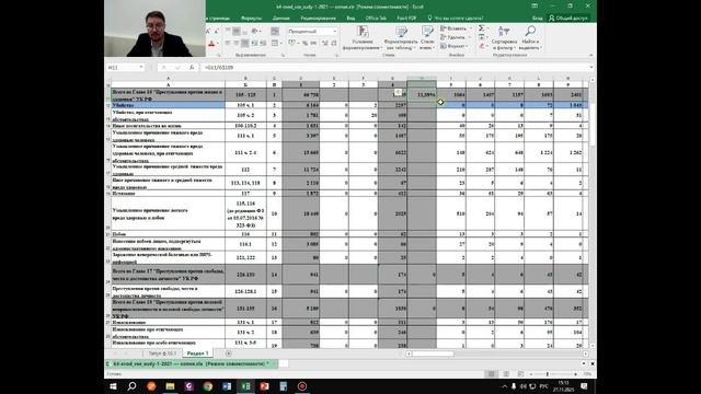 Таблица судебной статистики в Excel