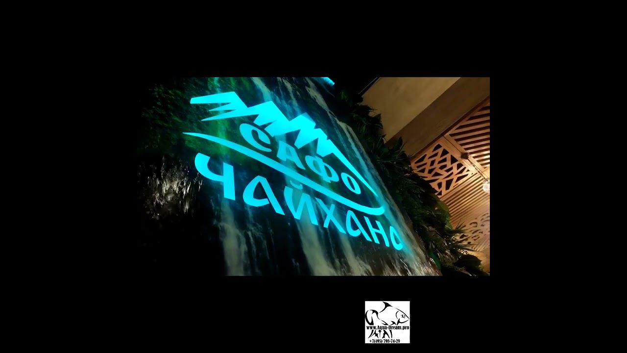 Водопад с логотипом и полноцветным фоном в ресторане