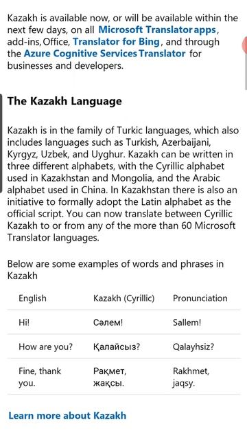 Казахский язык появился на платформе Microsoft Translator