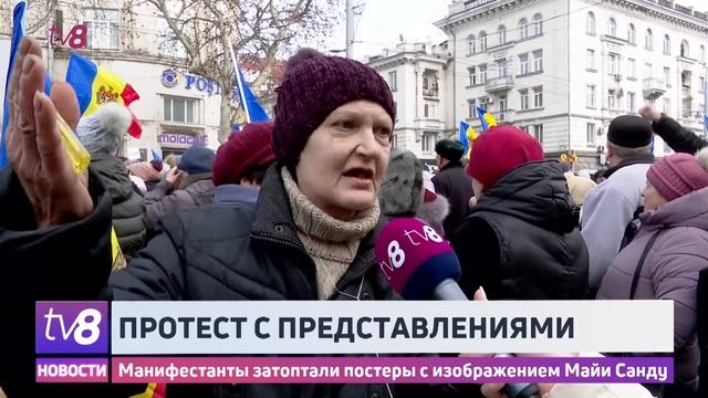 Протест с представлениями. Манифестанты затоптали постеры с изображением Майи Санду