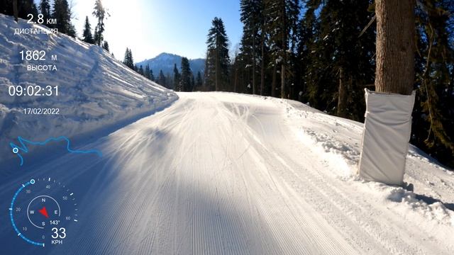 Горные лыжи. Архыз. Южный склон синяя 12ая.