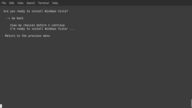 Installing Windows Vista from Linux using LinusGates but everything goes right