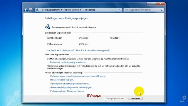 Installatie en configuratie van Thuisgroep (thuisnetwerk) in Windows 7 (ITVraag.nl)