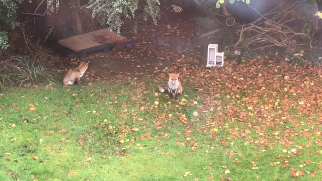 Foxes sister & brother waiting for food outside my windows, so cute!