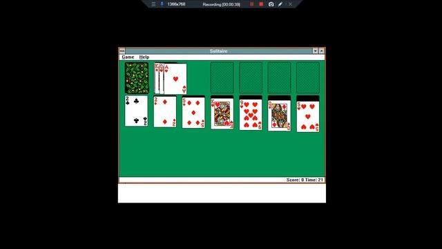 Playing solitaire in Windows 3.0 TestDrive PC WORLD Demo (VGA)