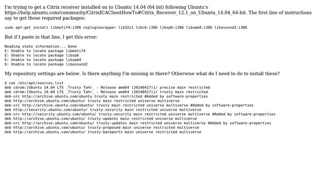 Ubuntu: Cannot locate packages for Citrix install