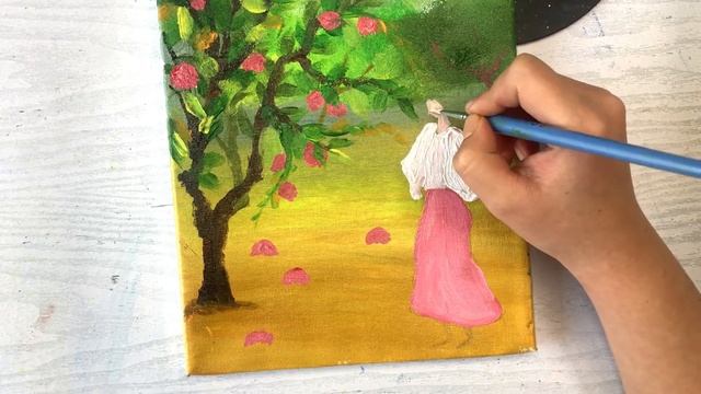 Acrylic Painting #113 | There's a cat picking apples |