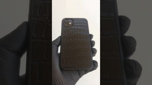 Чехол для iPhone I Черная кожа крокодила чистая
