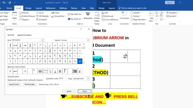 HOW TO INSERT EQUILIBRIUM ARROWS IN WORD - [ ⇌ ]