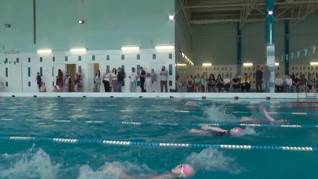 второй заплыв, девочки на спине. Первенство МАОУ ДО СШ "Радий" по плаванию, 7 июня 2023 г.