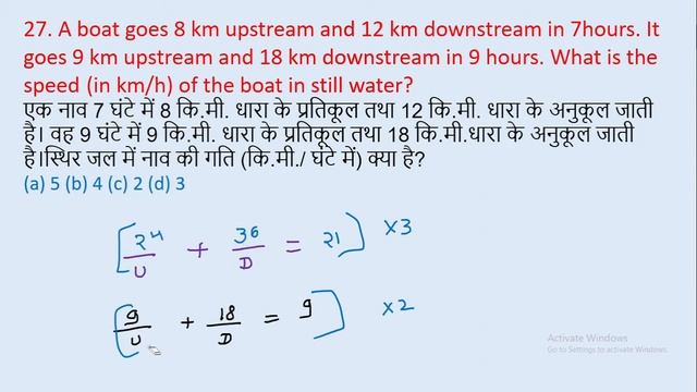 27. A boat goes 8 km upstream and 12 km downstream in 7hours. Itgoes 9 km upstream and || edu214