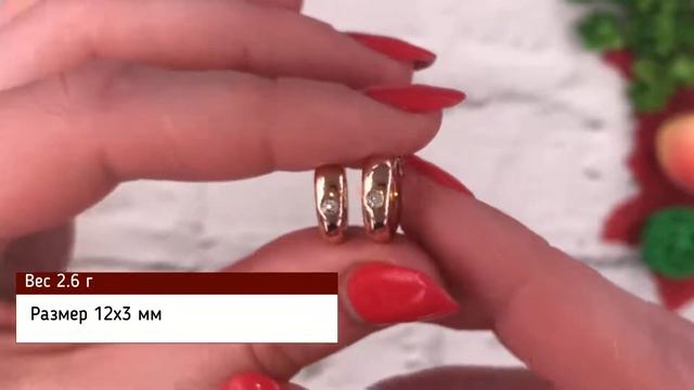 Позолотка Серьги Xuping 26512, размер 12х3 мм, вес 2.6 г, белые фианиты, позолота РО