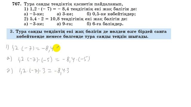 6 сынып. Математика. 767 есеп. Тура санды теңдіктің екі жағын бірдей санға көбейту және бөлу.