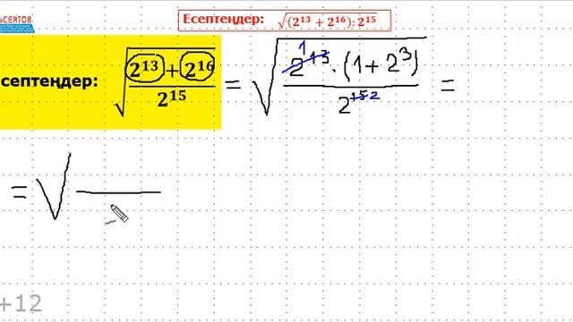 Sqrt((2^13+2^16)/2^15) Дәреже мен түбірге қатысты есептеулерге 1 есеп | Математика ҰБТ | Альсейтов