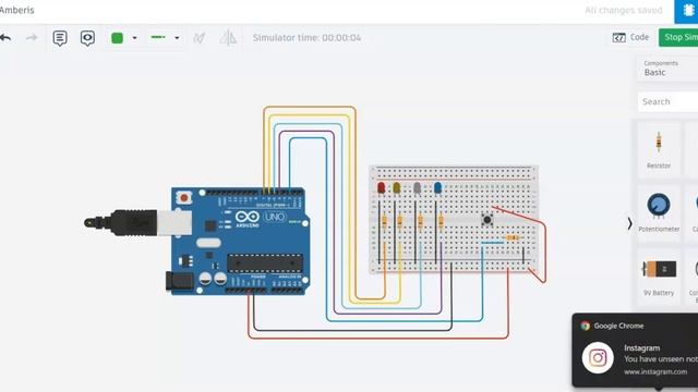 Simulation on Tinker Cad - Part 1 Led blinking using input button and maker Uno IOT