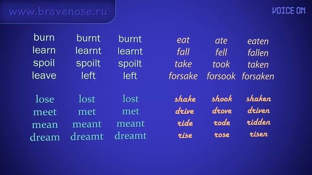 Неправильные глаголы английского 1 3 с закадровым голосом 1