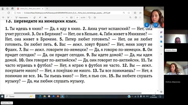 Фрагмент урока № 2 Немецкий язык Вопросит предложения, текст перевод предложений на русский