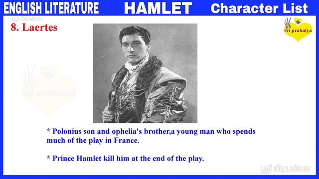 HAMLET CHARACTER LIST By William Shakespeare in Tamil