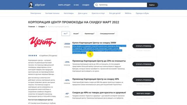 Промокод Корпорация Центр на скидку 2022 - Купон Корпорация Центр на первый заказ