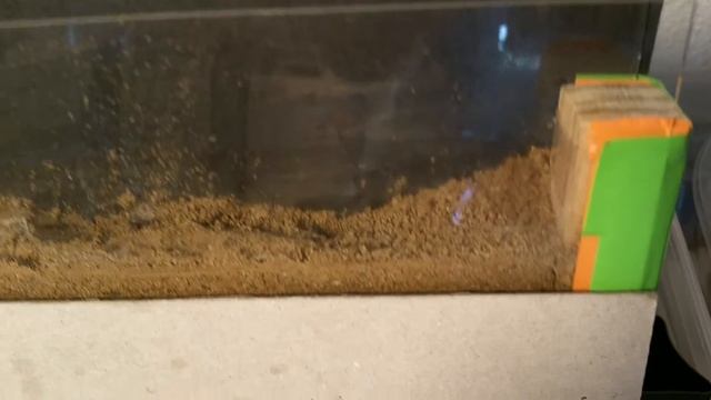 Pogonomyrmex queen digging nest in vertical picture frame dirt setup