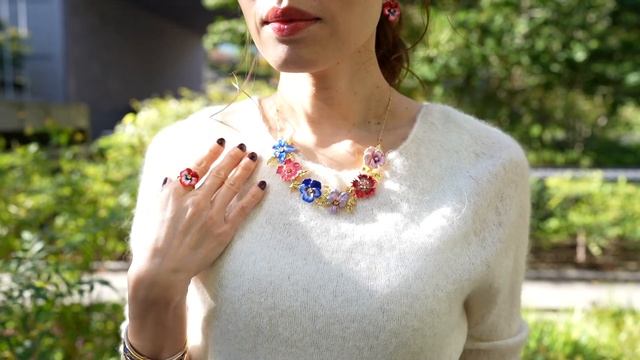 今日のコーデ806 Les Nereides (レネレイド) (AKMP604)赤いパンジーとクリスタルのカクテルリング