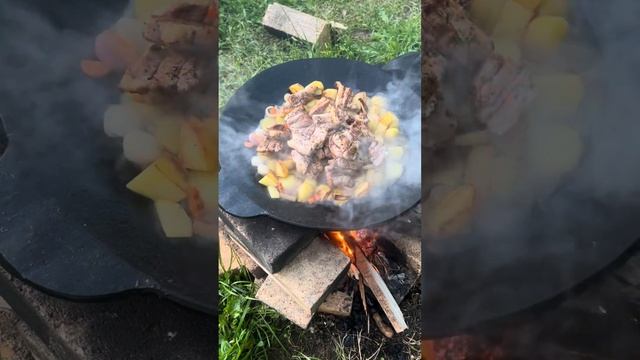 Садж.Грудинка с картофелем и спаржей#рек #рецепты #ужиннаогне#ужиннадаче#ужинрецепты
