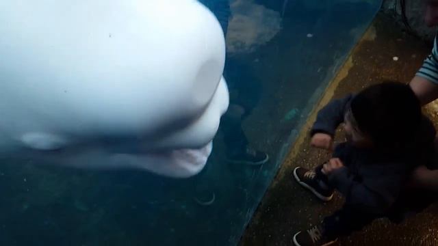 Juno the Beluga Whale Meets Theo at Mystic Aquarium!