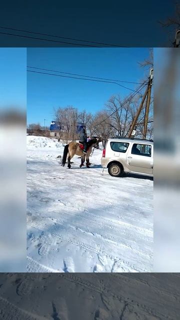 Да, я на коне! Лёнька на лошади 😁 #shorts#лошадьбоитсямашину#лошадь#конь#ребенокнаконе#whitehorse