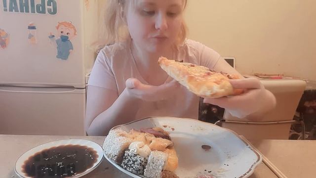 мукбанг/ суши, роллы и пицца 🍣🍕