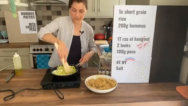 LIVE VEGAN RECIPE - HUMMUS PATTIES WITH CHEESY PEAS
