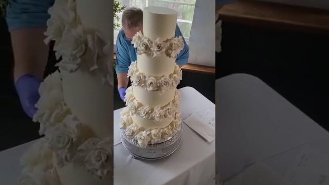 Assembling Four Tiered Buttercream Wedding Cake with Handmade Gumpaste Roses on site!