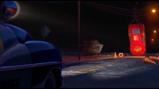 Disney Pixar Cars fall into the water: Lightning McQueen, Jackson Storm, Doc Hudson, Miss Fritter