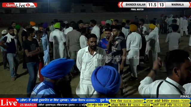 Final Match Warnala (Zira) Kabaddi Cup 25 March 2022