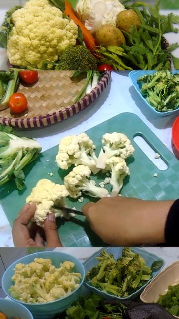 Memotong bunga kol kembang kol bisa juga disebut brokoli putih untuk sayuran sop #shorts