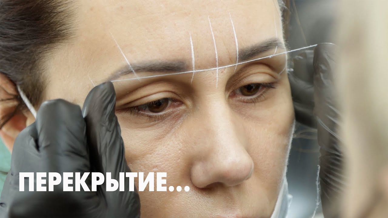 Перекрытие старого татуажа бровей.Перманентный макияж.До и после.