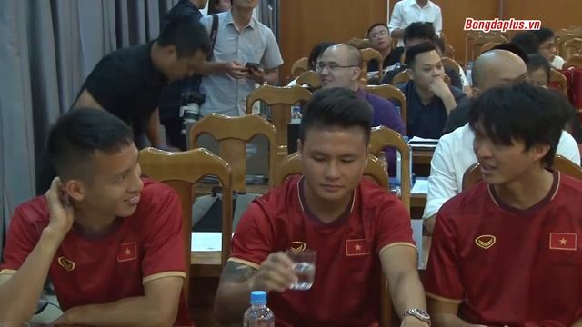 Bộ 3 sát thủ Quang Hải - Hùng Dũng - Tuấn Anh đi họp báo King Coffee