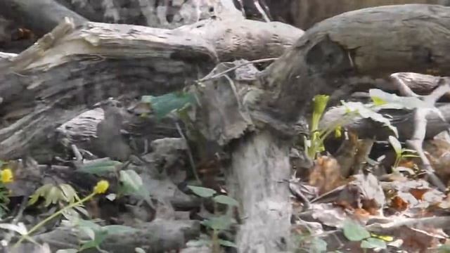 Птица запуталась в ветвях дерева.AVI