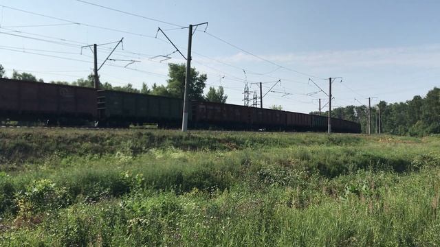 Электровоз ВЛ11-166/043Б с полувагонами на перегоне Ярославль-Главный – Приволжье