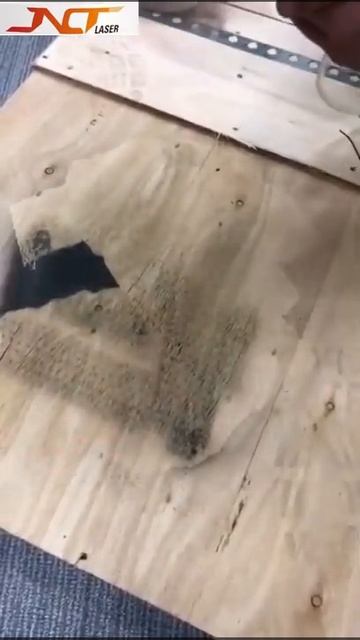 Pulsed laser cleaning machine cleaning paint on wood trim 加水印 Trim