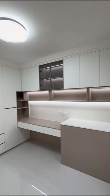 Шкаф, стол, антресоли с подсветкой.