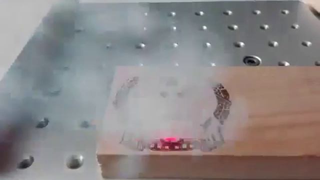Galvo type CO2 laser engraving machine engraving on wood