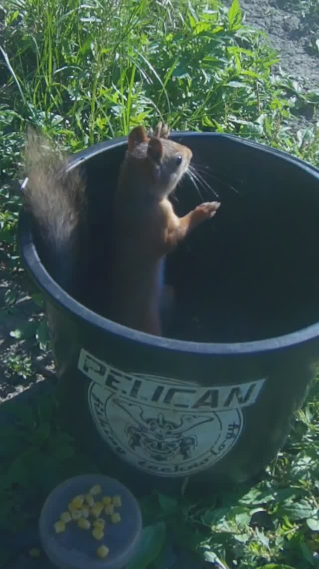 Белка пришла к рыбаку за своей долей